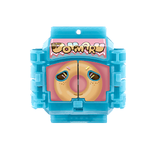 A vibrant Kamen Rider Gavv Donmaru toy, featuring a cute donut character inside a blue casing, from the Japanese series.