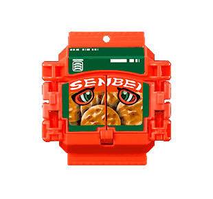 Kamen Rider Gavv 仮面ライダーガヴ sticker featuring a senbei-themed toy with cartoon eyes.