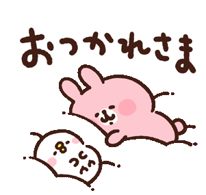 Pink Kanahei Usagi and Pisuke are sleepy, resting with the Japanese caption "Otsukaresama" (Good job).