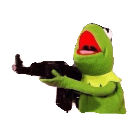 Kane Haxie Haxie Time features Kermit the Frog holding a black gun with his mouth open, looking intense.