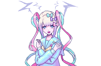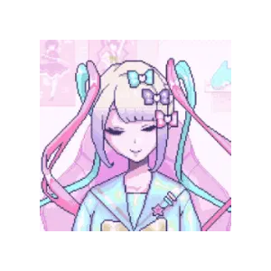 a pixel art of a girl with pigtails and a bow on her head
