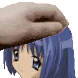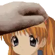 Misaka Shiori from Kanon receives a gentle head pat, showing a sweet and happy reaction in this anime sticker.