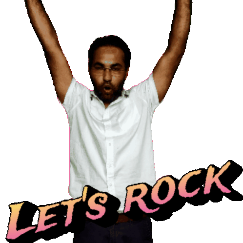 Kapilbalharanebsarai enthusiastically raises his arms, exclaiming 'Let's Rock' with a vibrant text overlay.