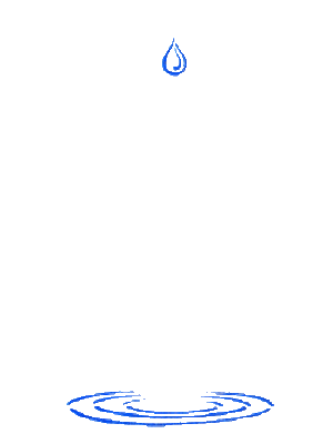 A single blue water droplet falls and creates expanding ripples on a surface, set against a transparent background.