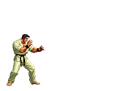 Takuma, the legendary karate master, unleashes a powerful combo of punches, kicks, and a fiery projectile attack.