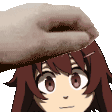 A gentle hand lovingly pets the head of the adorable anime character Kary Pet Pet, who smiles sweetly. Features Mugen.