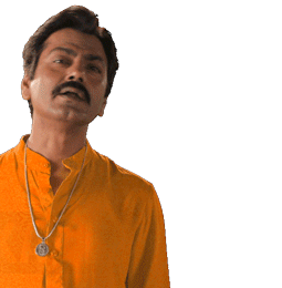 Nawazuddin Siddiqui as Ganesh Gaitonde from Sacred Games, with the iconic 'Kat Le' (Get Lost) phrase, expressing annoyance.
