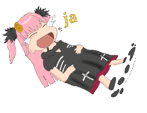 Katarina Akina Risa, a chibi anime girl with pink hair, is shown lying down and crying with tears streaming down her face.