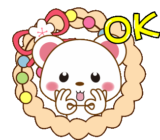 A cute Kawaii anime character, possibly a bear, making an 'OK' gesture within a decorative floral wreath frame.