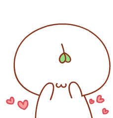 A charming kawaii cartoon character with a sprout on its head expresses love and tenderness, surrounded by floating pink hearts.