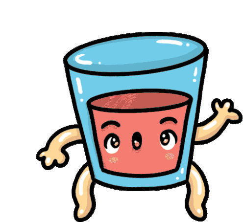 A cute, animated glass filled with red liquid, featuring a kawaii face, arms, and legs, wiggling playfully.