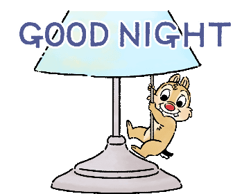 Kawaii Dale the chipmunk swings on a lamp, turning off the light for a good night. Cute animated sticker.