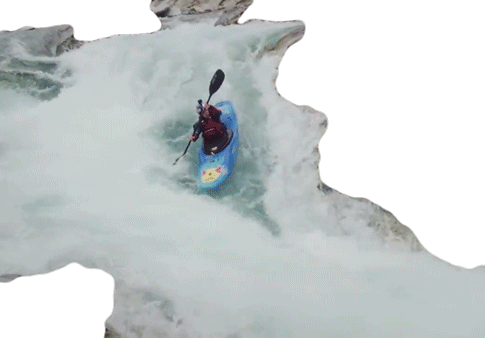 An extreme sports enthusiast in a Red Bull branded kayak navigates challenging white water rapids with skill and power.