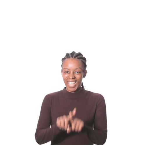 Kaye Moyo smiles and points as a red animated heart pulses above her head, symbolizing love and affection.