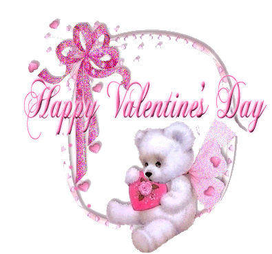 A cute teddy bear with butterfly wings wishes Kaye a Happy Valentine's Day, holding a heart gift.