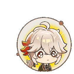 An adorable animated chibi sticker of Kazuha from Genshin Impact, featuring him with a sad or concerned expression within a glowing yellow circle.