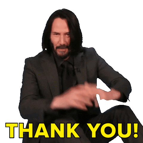 Keanu Reeves, dressed in a suit, expresses gratitude with a 'Thank You!' gesture and caption.