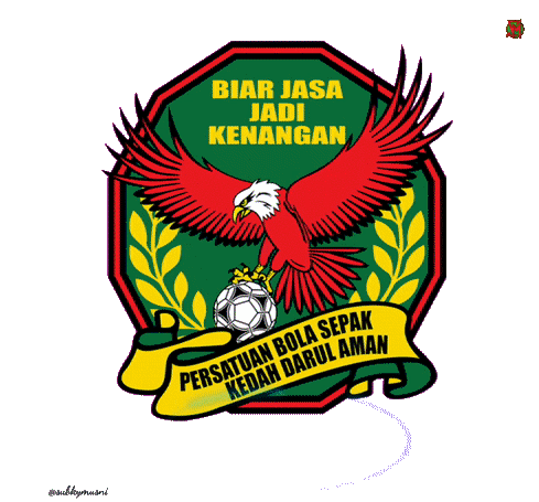 Animated sticker featuring the Kedah FA football logo with a red eagle, football, and the motto 'Let Services Become Memories'.