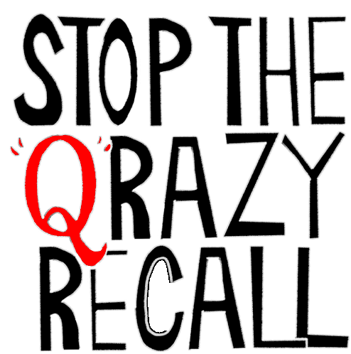 Sticker urging to "STOP THE QRAZY RECALL" and "Keep CA Blue", referencing the California recall election and Gavin Newsom.
