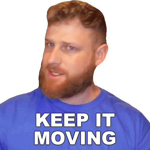 Grady Smith, a man with a beard, wears a blue shirt with 'KEEP IT MOVING' text, delivering a motivational message.