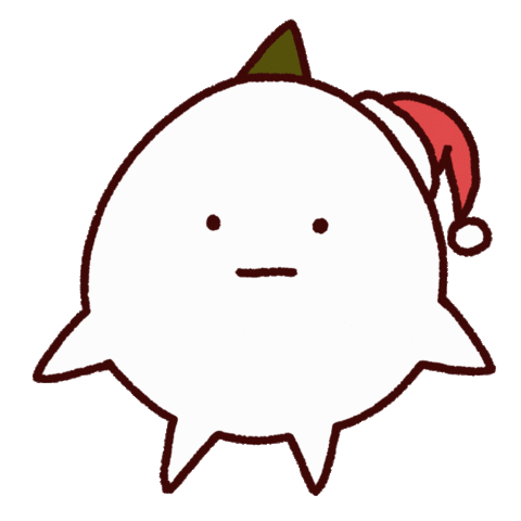 A cute, calm, white blob character wearing a Santa hat, signaling silence or quiet contemplation. Perfect for a peaceful mood.
