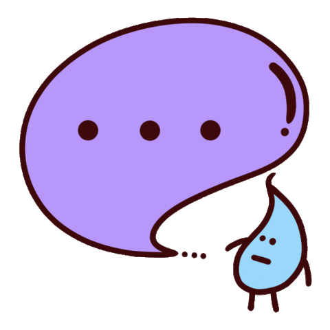 A cute blue teardrop character with an empty purple speech bubble, conveying silence or 'zip it' without words.