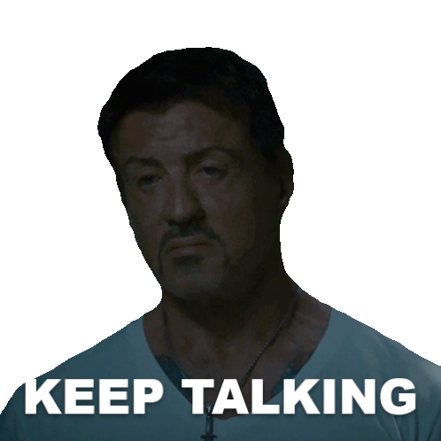 Sylvester Stallone as Barney Ross from The Expendables 2 encourages to "Keep Talking".