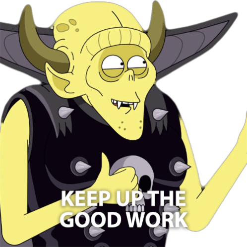 Bazarack from Netflix's Farzar gives a thumbs up, encouraging with 'KEEP UP THE GOOD WORK' in this animated sticker.
