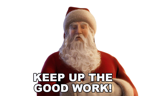 Santa Claus from The Polar Express encourages with 'Keep Up The Good Work!' a perfect sticker for motivation.
