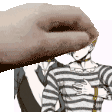 Keiji Shinogi and Alice Yabusame from YTTD, with a hand holding a donut over Keiji's head.