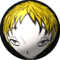 A rotating 3D orb featuring Keiji Shinogi from Kimi ga Shine, with his face split between black and white backgrounds and yellow hair.