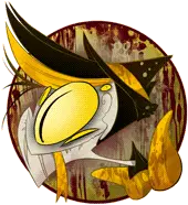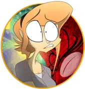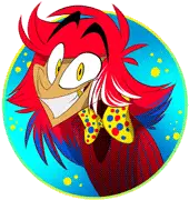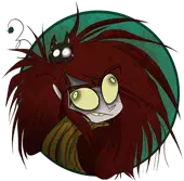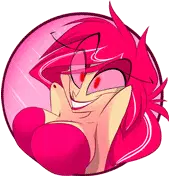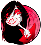 Keiko from Zoophobia, a cartoon character with long black hair, red eyes, and a mischievous smile, in a vibrant red circle.