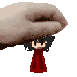 Pixel art sticker featuring Keith Pat, a character in a red dress, being held gently by a hand.