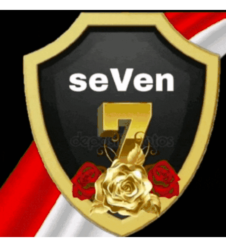 Animated sticker featuring two distinct logos for SEVeN family indonesia, including a shield and a glittery circle design.