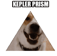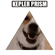 A dog's face is humorously distorted and mapped onto a pyramid, labeled as a 'Kepler Prism' in this meme sticker.