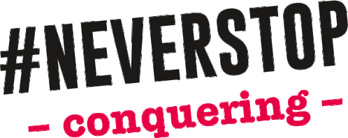 Motivational sticker featuring 'NEVERSTOP conquering' text, associated with Ketofabrik and Ketoonthego brands.