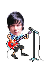 Vietnamese singer Khanhphuongafang (Kpf) depicted as a pixel art guitarist, rocking out with a red guitar and microphone.