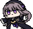 Animated pixel art sticker of a girl crying, featuring purple eyes and a black jacket.