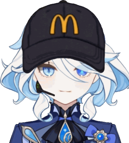 a girl wearing a mcdonald 's hat and a microphone