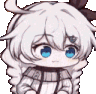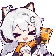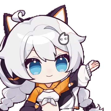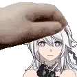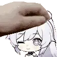 Animated sticker of Kiana, an anime girl with white hair, shaking her head playfully.