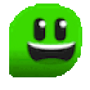 A vibrant green pixel art emoji with a wide, happy smile, often used as a 'Kick' platform sticker.