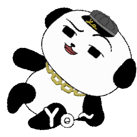A mischievous panda character with a cap and gold chain playfully sticks out its tongue, expressing a teasing and fun mood.