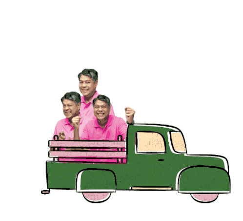 Kiko Pangilinan and his team wave from a green pickup truck, showing support for Team Kiko.
