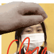 Kim Anh Anh receives a gentle head pat while wearing a face mask, a cute and comforting petpet sticker.