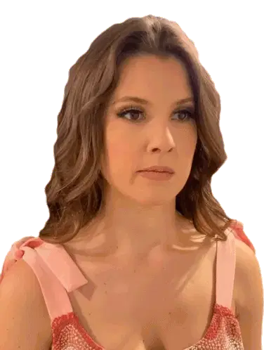 Amber Scholl making a 'kind of' or 'air quotes' gesture with a skeptical, pouting expression.