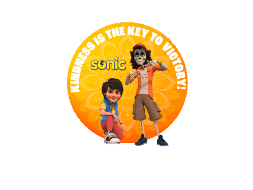 a sonic the hedgehog logo with two cartoon characters on it