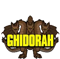 A pixel art sticker of King Ghidorah, the iconic three-headed dragon from Godzilla, depicted in a dynamic flying pose.