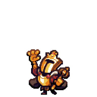 King Knight from Shovel Knight animated in pixel art, raising his arm with a regal pose.
