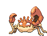 An animated pixel art sticker of Kingler, the Pokémon crab, with its large claws raised and an intense expression.