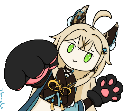 Animated sticker of Kirara from Genshin Impact, showcasing her signature cat punch move with playful energy.